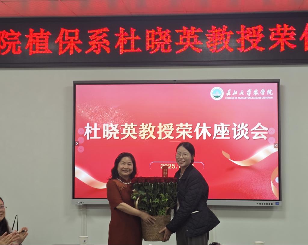 (通讯员 周静)2025年11月4日下午,pp电子游戏官网在农科大楼3064会议室为杜晓英教授举办了一场温馨的荣休座谈会。学院领导班子与全体植物保护系教师参加了本次座谈会,会议由植保系主任邓建新教授主持。
