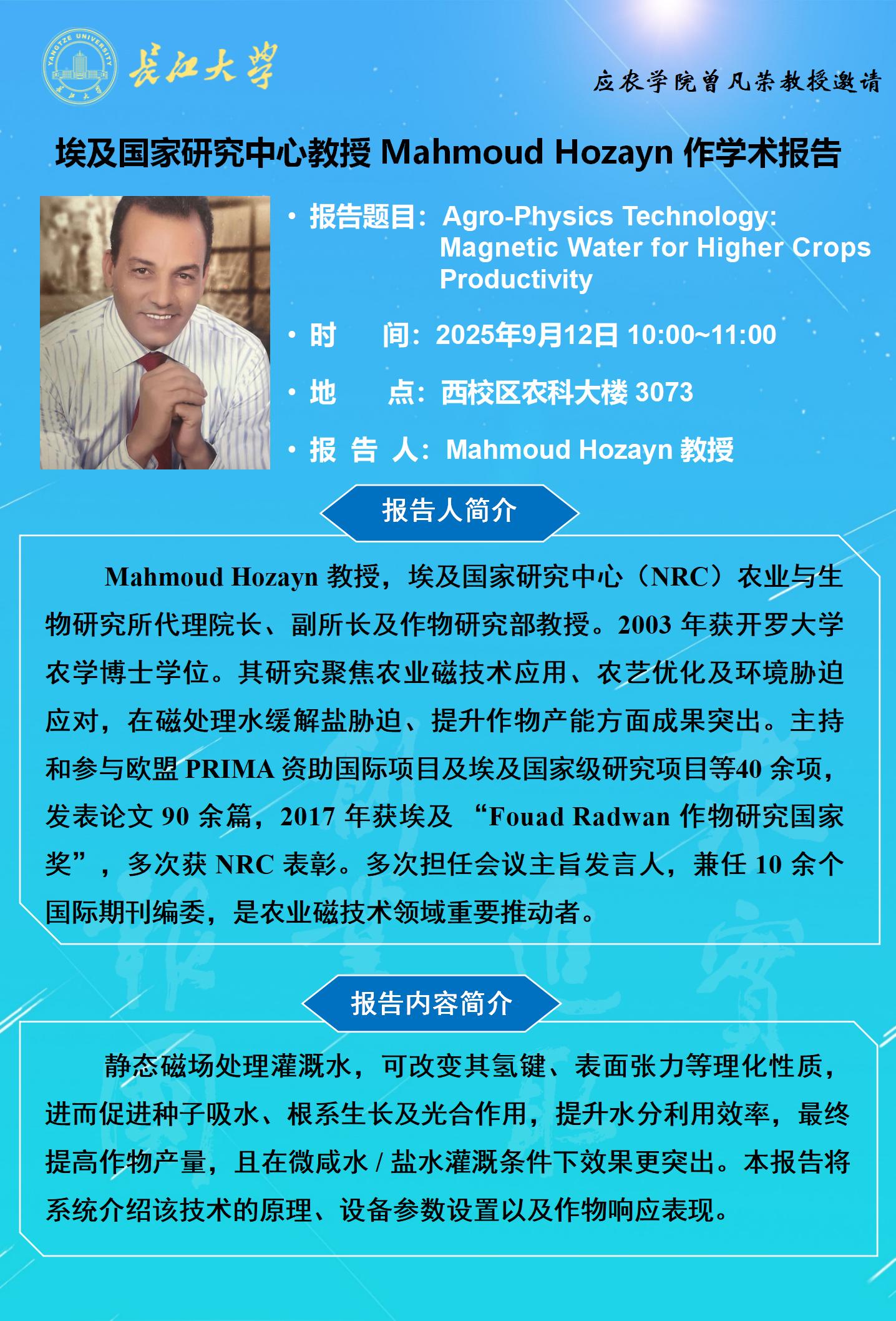 pp电子游戏官网2025年学术报告(十五):Agro-Physics Technology-Magnetic Water for Higher Crop Productivity