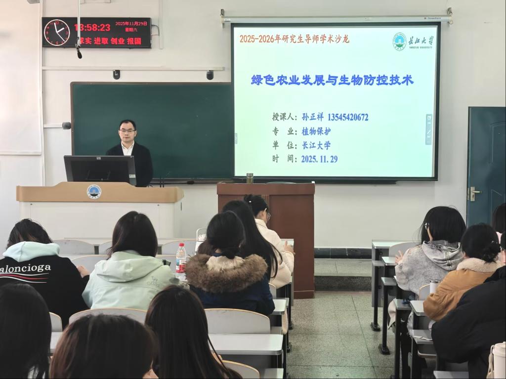 (通讯员 孙正祥)为深化研究生对现代农业科技前沿的理解,提升科研创新与产业融合能力,2025年11月29日,一场主题为“绿色农业发展与生物防控技术”的研究生导师学术沙龙在我校西校区7-304教室成功举办。本次沙龙由pp电子游戏官网孙正祥教授主讲,吸引了众多相关专业的研究生积极参与。