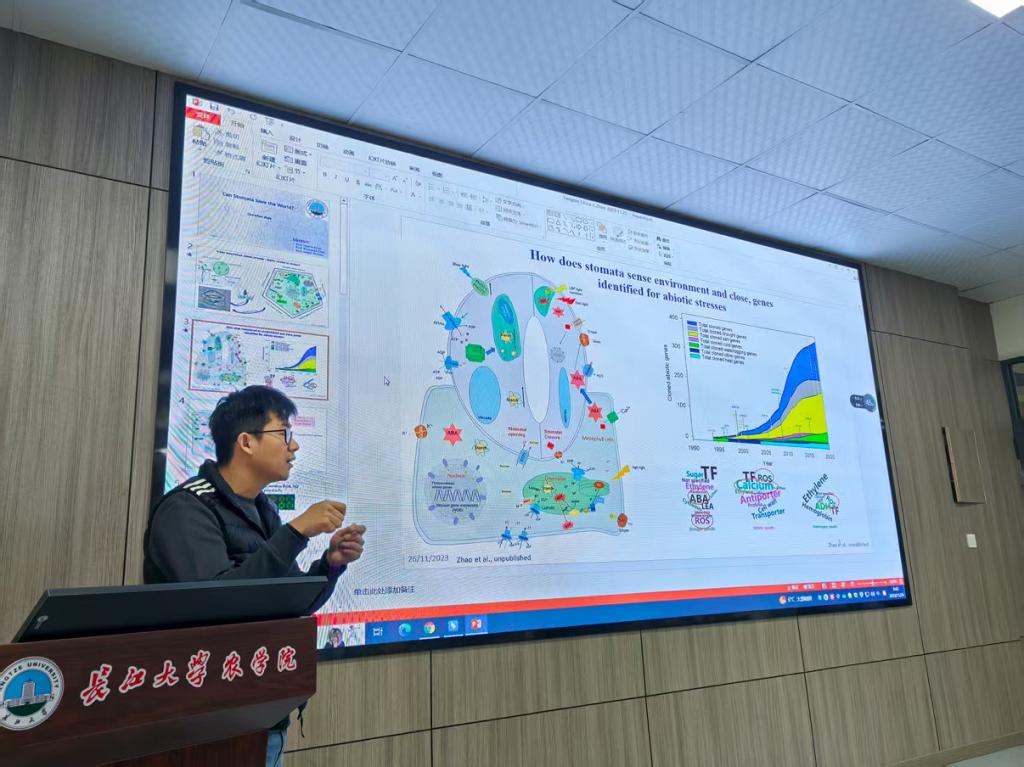 (通讯员 邓锋林)3月31日上午,pp电子游戏官网求实导师学术沙龙专场活动在农科楼3073举行。活动中,赵晨晨博士作了题为“Can stomata save the world” 的学术报告,围绕植物气孔的分子进化历程及其在环境适应性中的关键作用展开。他结合全球气候变化背景,分析了气孔在调节植物水分利用效率、光合效率以及抵御极端环境方面的重要性。报告介绍了其多年来在干旱、盐胁迫和酸性土壤等典型非生物胁迫条件下,植物气孔适应性机制方面的研究成果,尤其是在解析叶绿体磷酸代谢信号分子在调节气孔开闭和植物干旱胁迫响应中的新进展。这些研究及取得的成果为培育环境适应性作物品种提供了新的理论支撑与种质资源。