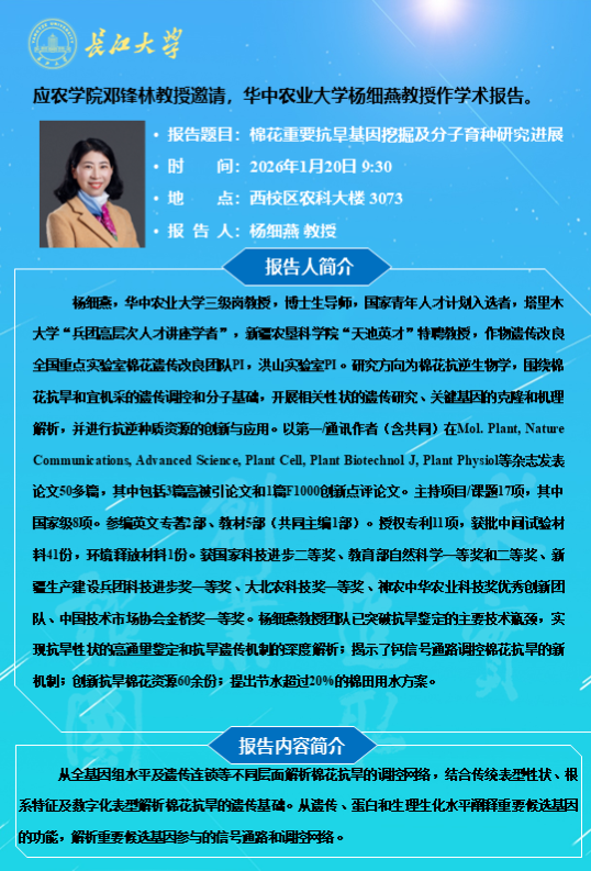 pp电子游戏官网2026年学术报告(一):棉花重要抗旱基因挖掘及分子育种研究进展