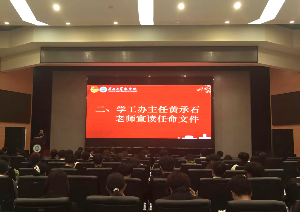 (通讯员 吴泓萱 张源康 胡雪晴/文 向建华 何遥 孙夏彦 安菲菲/摄)为加强学生干部队伍建设、提升其综合素质与工作能力,表彰优秀学生干部并激励全体成员奋发进取,10 月 19 日下午 2 点半,pp电子游戏官网于农科大楼 1058 报告厅召开第二十二届团委学生会成立大会。院党委副书记尹小华、学工办主任黄承石、团委书记付雪娇等 6 位老师,及第二十二届团委学生会全体成员、第五期青马班学员、艺术团全体成员等参会。会议由崔舒淇主持。