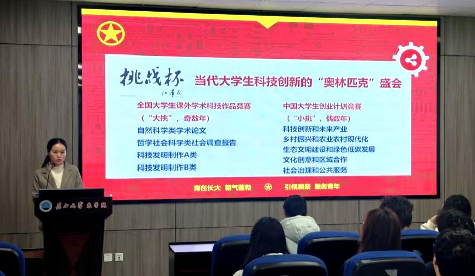 会上,付老师对“挑战杯”竞赛的历史沿革、赛事宗旨和重要意义进行了详细介绍。她指出,“挑战杯”不仅是展示高校育人成果的重要窗口,更是培养学生创新精神、实践能力和团队协作能力的顶级平台,希望同学们把握机会,勇于挑战。
