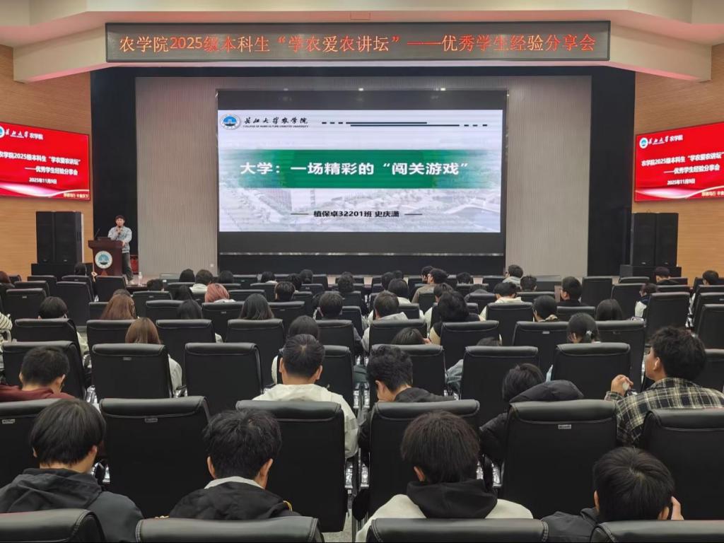 (通讯员 刘佳昊 康新陈 吴静宜/文 张源康 胡雪晴 吴泓萱 向建华/摄)为厚植学子学农爱农情怀,筑牢强农兴农使命担当,积极践行“厚德笃行、丰食天下”的院训精神,11月9日19:00,pp电子于农科大楼1058报告厅举办 2025 级本科生“学农爱农讲坛”——优秀学生经验分享会。辅导员唐玉婷与2025级pp电子游戏官网全体学生齐聚一堂,共同聆听优秀学子的成长故事。本次分享会由张可欣同学主持。