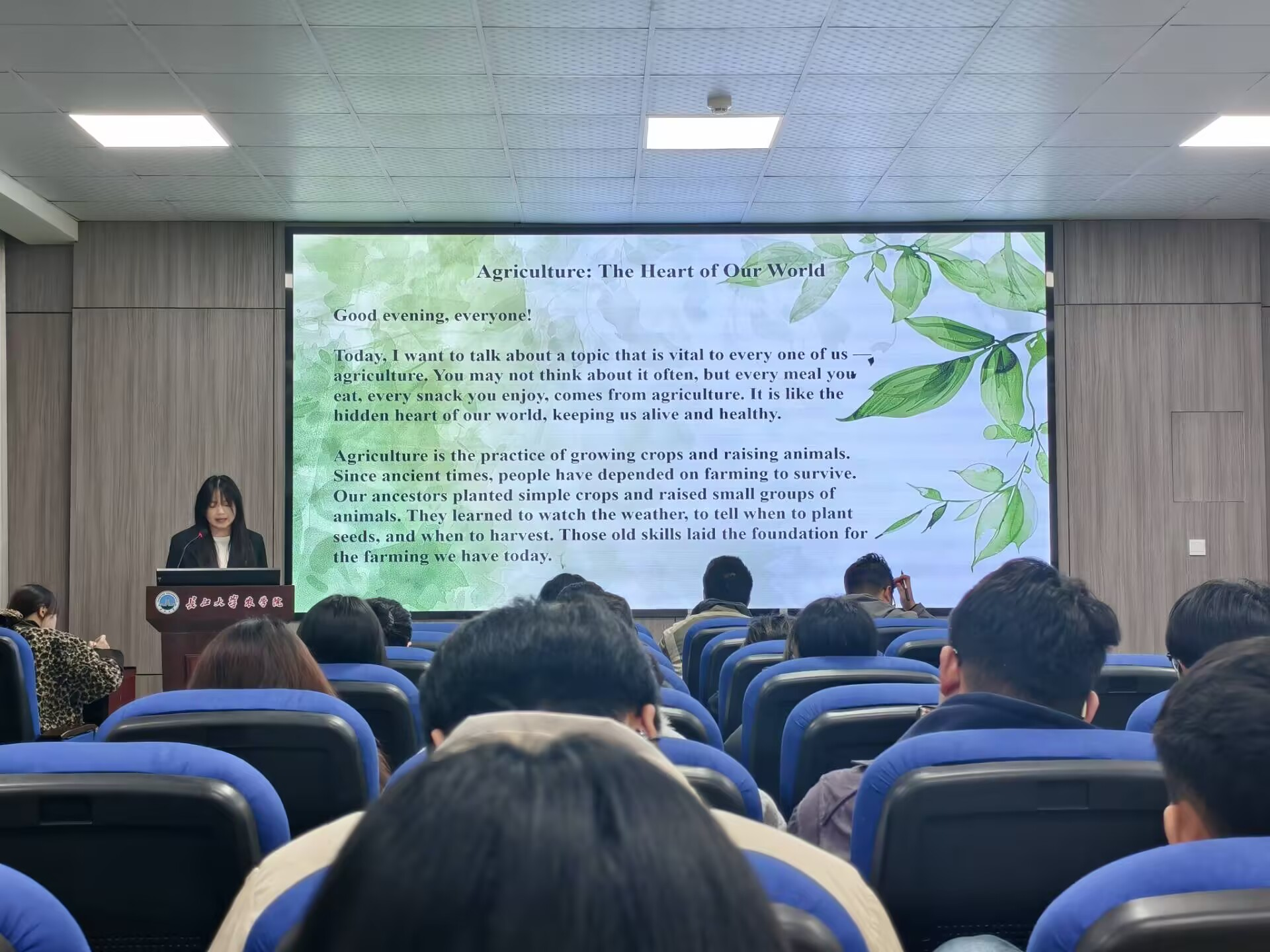 此次决赛比赛形式是由选手结合农学专业特色与个人生活经历,辅以PPT、音乐等多元形式,深情朗诵积极向上的英文诗词与文章,用流利的表达与饱满的情感展现农科学子的英语素养与青春风貌。评委团则依据评分细则,对选手的表现进行专业、公正的打分。
