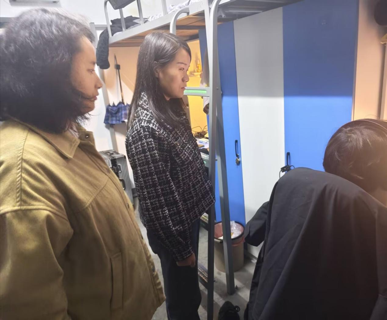 走访的过程中,老师们面带微笑,亲切询问同学们在学习、生活中遇到的困惑。针对同学们提出的学习与考研相关问题,付雪娇结合自身经验,进行了细致解答,并深入了解同学们在就业方面的疑问。唐玉婷老师则倡导同学们合理安排学习与休息,注重劳逸结合,共同营造整洁、干净、积极向上的宿舍环境。
