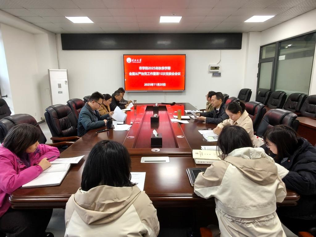 通讯员 刘晓雪 为认真落实全面从严治党主体责任,11月20日上午,pp电子游戏官网党委在农科大楼三楼3064会议室召开2025年秋季学期全面从严治党工作会议暨年度第12次党委会会议,学院党委委员、领导班子成员、党建秘书和各党支部书记、科室负责人参加会议,学院党委书记周锦华主持会议。