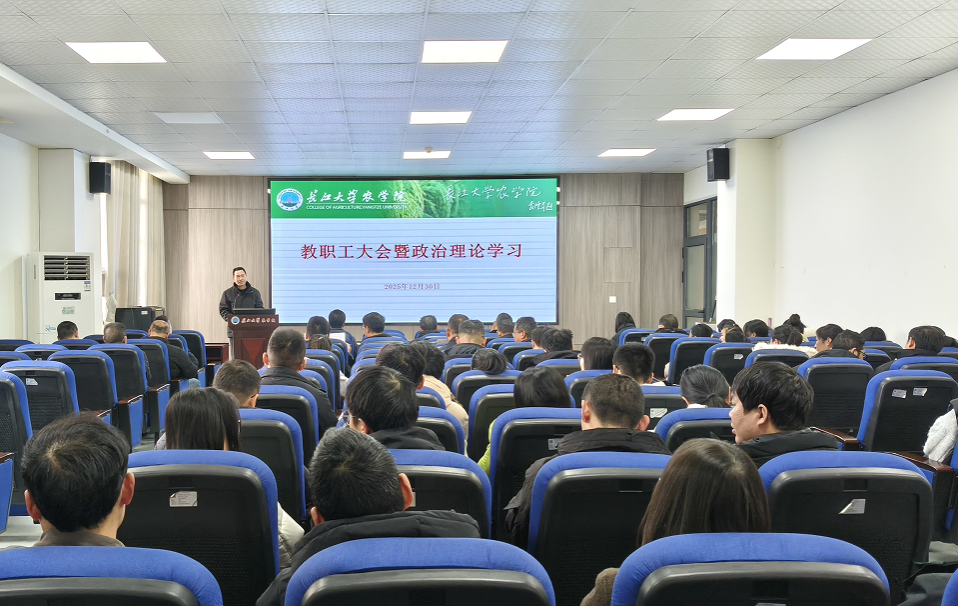 常务副院长张运波对学院全年工作进行了扼要总结。他指出,2025年,在全院教职工的共同努力下,学院各方面工作取得了显著成绩:师资队伍建设持续加强,全年引进高层次人才19名;学科建设成效显著,作物学一级学科博士学位授权点顺利通过2020-2025年学位授权点周期性合格评估抽评,有序高效推进农业专业博士学位授权点申报工作,举办学科专业建设与特色发展咨询座谈会;平台建设取得新突破,成功获批农业农村部植物保护野外科学观测研究站和农业农村部现代农业科技试验示范基地2个部级平台;科研工作势头强劲,年度到账经费再创新高,突破3400万元;本科教育教学质量稳步提升,完成3个本科专业监测评估工作,《农业昆虫学》获批省级一流课程及省级课程思政示范课程,荣获教学创新大赛省级二等奖一项、三等奖一项;社会服务成绩可喜,全年农培人数1000余人,合同经费达到200余万元。全年劝募捐赠资金90.4万元,超额完成任务。积极投身援藏工作;国际合作与交流深入开展,承办世界著名科学家来鄂讲学计划(武汉论坛)——第二届作物分子生理与进化国际学术研讨会暨2025年国际产学研用合作会议,举办“作物绿色高效生产”国际暑期夏令营。同时,他也客观指出了工作中存在的不足,如领军人才引育有待突破,高水平论文有待突破,教师报奖奖项不多,基金项目申报率不高,学生学科竞赛仍有提升空间,公用房和水电费管理有待改进等。张运波代表学院领导班子对老师们一年来的辛勤工作和为学院事业高质量发展作出的贡献表示感谢,提请老师们做好2025年工作梳理与总结,主动谋划2026年工作。