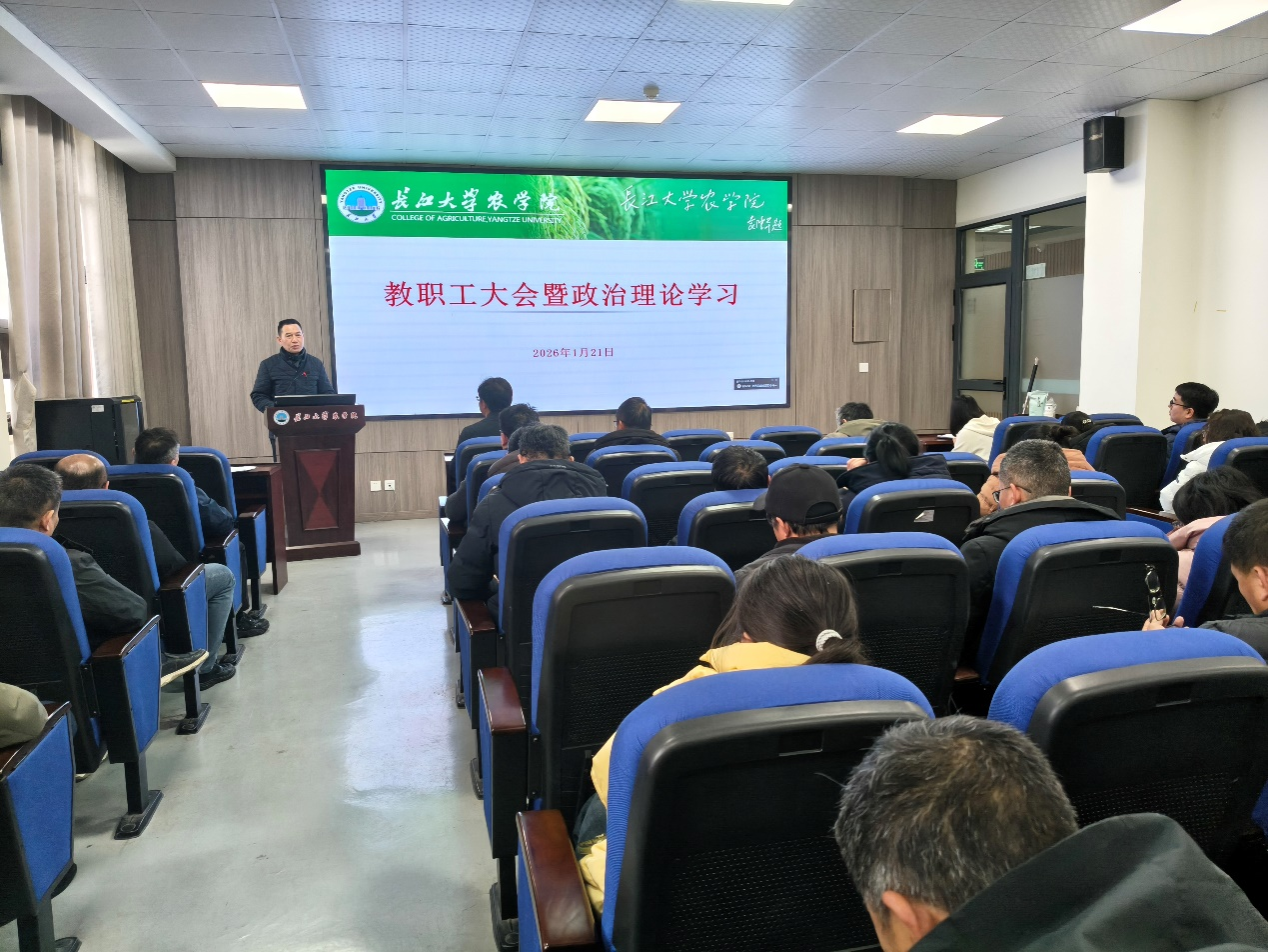 (通讯员 王雪)2026年1月21日下午,pp电子游戏官网在农科大楼3073会议室召开全体教职工大会暨政治理论学习会议。会议由学院党委书记周锦华主持,全体教职工参加。