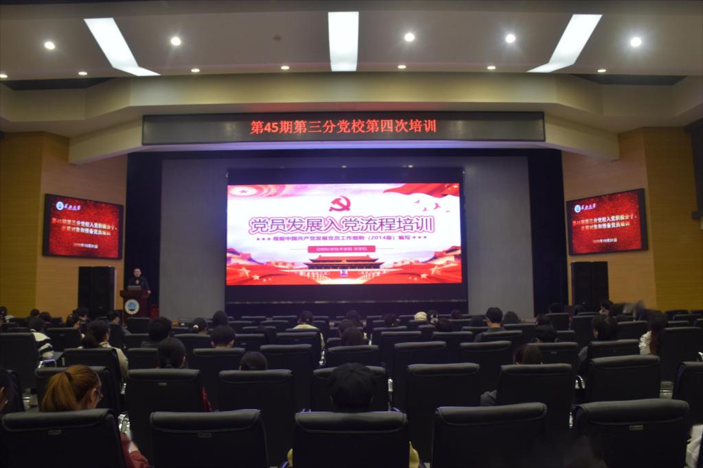 (通讯员 郑怡乐 王思雨/文 何遥 安菲菲 孙夏彦/摄)入党流程是党员发展的金钥匙,政治认知是青年向党的定盘星。为帮助学员精准掌握入党全流程要点,筑牢向党组织靠拢的思想根基,10月31日晚7点,pp电子游戏官网在农科大楼1058 报告厅如期开展第45期第三分党校第四次培训。本次培训特邀动物科学技术学院分团委书记宋宇航主讲,pp电子游戏官网辅导员唐玉婷与第三分党校全体入党积极分子、发展对象及预备党员共同参加培训。