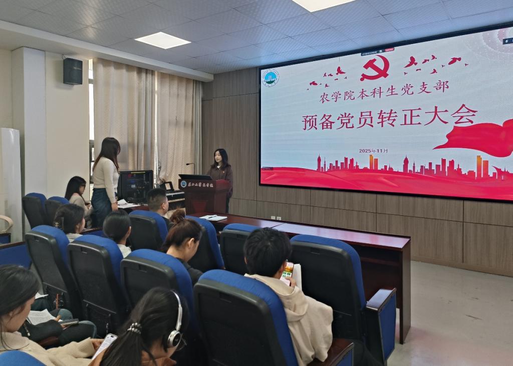 (通讯员 武芊睿)为进一步壮大和优化党员队伍,增强党组织的凝聚力与战斗力, 11月19日,pp电子游戏官网本科生党支部在农科大楼3073召开2025年下半年预备党员转正大会,讨论预备党员肖雅萱等3名同志的转正问题。应到会党员19名,实到会19名,应到会有表决权的正式党员7人,实到会7名,超过半数,符合党员发展流程。会议由党支部书记黄承石老师主持并作总结发言。