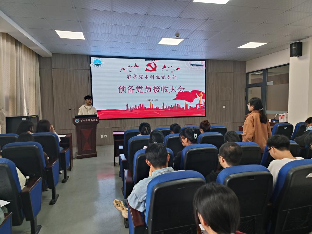 (通讯员 武芊睿)为确保新发展党员的质量,保持党员队伍的生机与活力,11月27日,pp电子游戏官网本科生党支部在农科大楼3073召开2025年下半年预备党员接收大会,讨论发展对象任飞越等5名同志的入党问题。应到会党员19名,实到会19名,应到会有表决权的正式党员10人,实到会10名,超过半数,符合党员发展流程。会议由党支部书记黄承石老师主持并作总结发言。