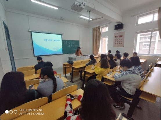图一农学产31701班团支部副书记兼组织委员程心怡带领大家开展“青春心向党·建功新青年”大讨论