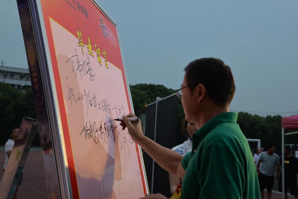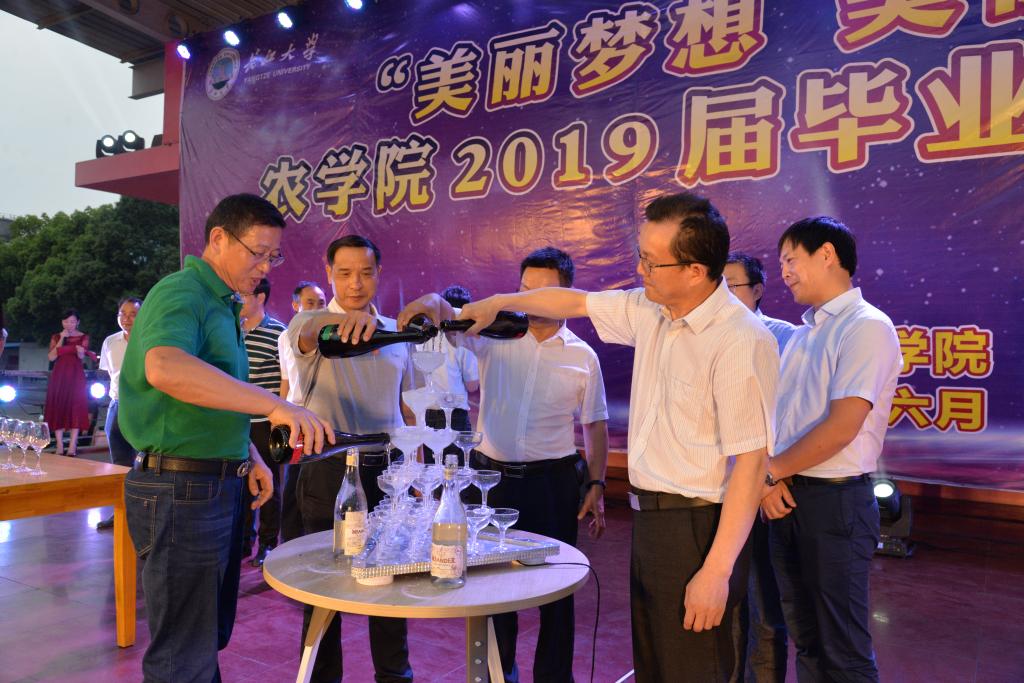 晚上七时许,餐会正式开始,学校相关职能部门负责人与pp电子游戏官网老师们,一同为2019届毕业生送上真挚的祝福。“感恩的心•眷念的情”赠言签名活动中,老师和同学们纷纷走向台前,在留言板前长久驻足,提笔写下满腔深情;“梦想启航•助力放飞”环节里,500余个氢气球承载着师生们的梦想,飞向了遥远、蔚蓝的天际;香槟开启仪式上,师生们斟满祝福,为“长大长新、乡村振兴、国家复兴”共同举杯。