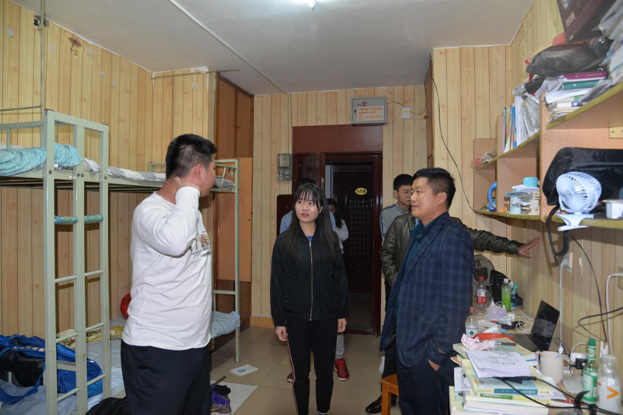 新闻网讯(见习记者 杜凡凡/文 周海锋/摄)为更好地提高pp电子学生的安全责任意识,全方面了解学生宿舍的真实状况及问询同学们对宿舍生活的意见和建议。10月15日晚八点,党委副书记谭亮魁、团委书记尹小华、宿委会主任万钰和辅导员付雪娇走访了pp电子游戏官网学生宿舍。