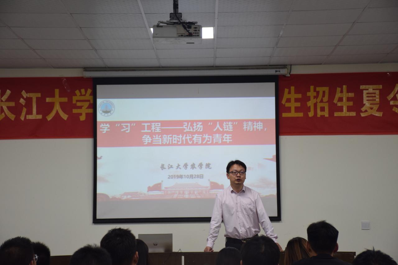 通讯社讯(见习记者 李建平)为进一步贯彻落实中央领导同志重要批示精神,深入学习宣传大学生英雄集体的优秀品德和崇高精神,深刻领会大学生英雄集体的精神价值,pp电子于10月23日晚19:00在农科大楼3073会议室开展弘扬“人链”精神,争当新时代有为青年学习活动。本次活动由植物类31902班团支书孙振艳主持,团委书记尹小华,17、18级副团支书及19级全体班委参与此次活动。