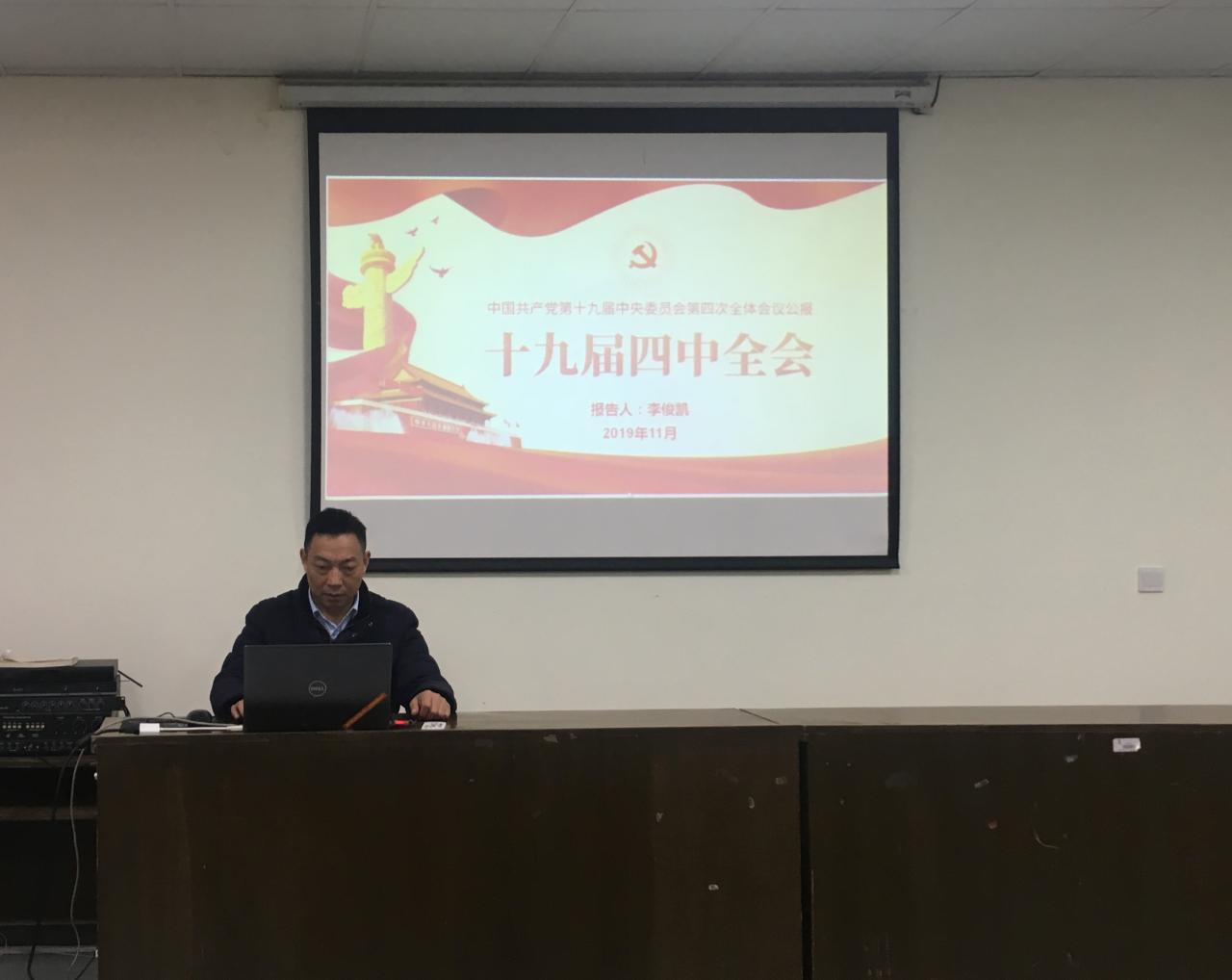 通讯社讯(通讯员 李易奇)11月20日晚19:00,pp电子组织入党积极分子、发展对象、预备党员及党员学习关于中国共产党第十九届中央委员会第四次全体会议内容。主讲人为院长李俊凯。