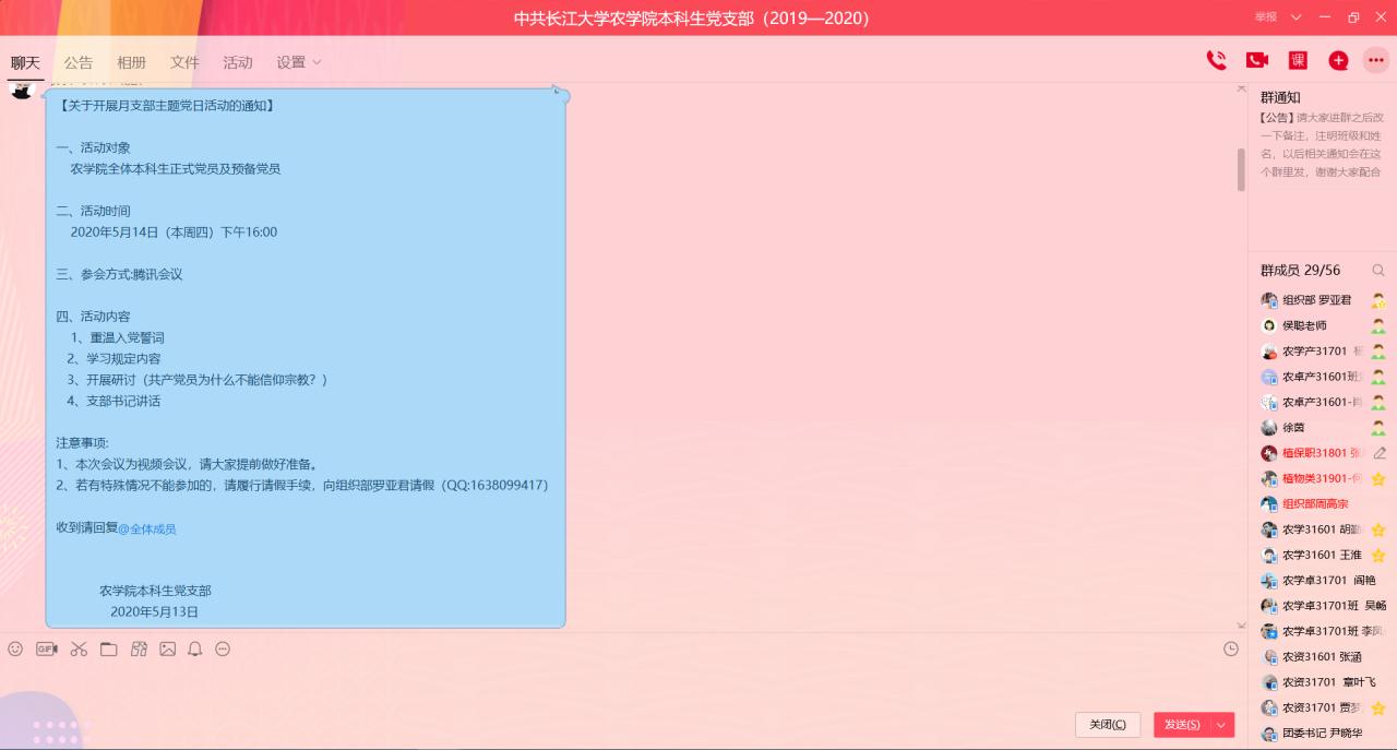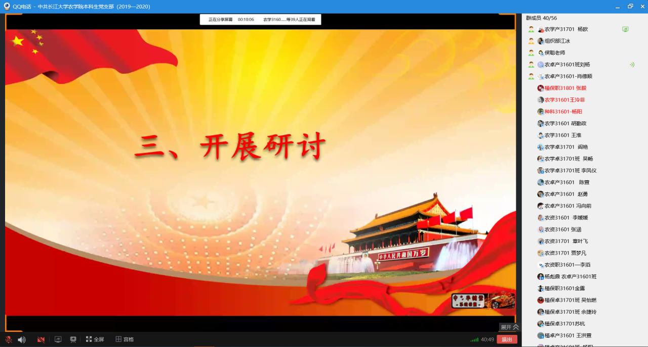 通讯社讯(学生记者 张毅)为引导广大党员用马克思主义立场、观点、方法认识和对待宗教,坚定共产主义信仰和中国特色社会主义信念,pp电子本科生党支部于5月14日16:00通过QQ群视频通话的方式开展了线上支部主题党日活动。此次活动由pp电子游戏官网本科生党支部宣传委员杨欧主持,全体本科生正式党员以及预备党员参与此次活动。