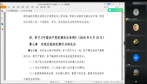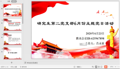 通讯社讯(通讯员 高亚强 周志雄)为深入学习贯彻习近平总书记重要讲话及有关文件精神,引导和激励广大党员履职尽责,奋发有为,院研究生第二党支部623日下午通过腾讯会议,线上开展了6月份支部主题党日活动。全体正式党员及预备党员参与此次活动,会议由支部副书记肖永欣主持。