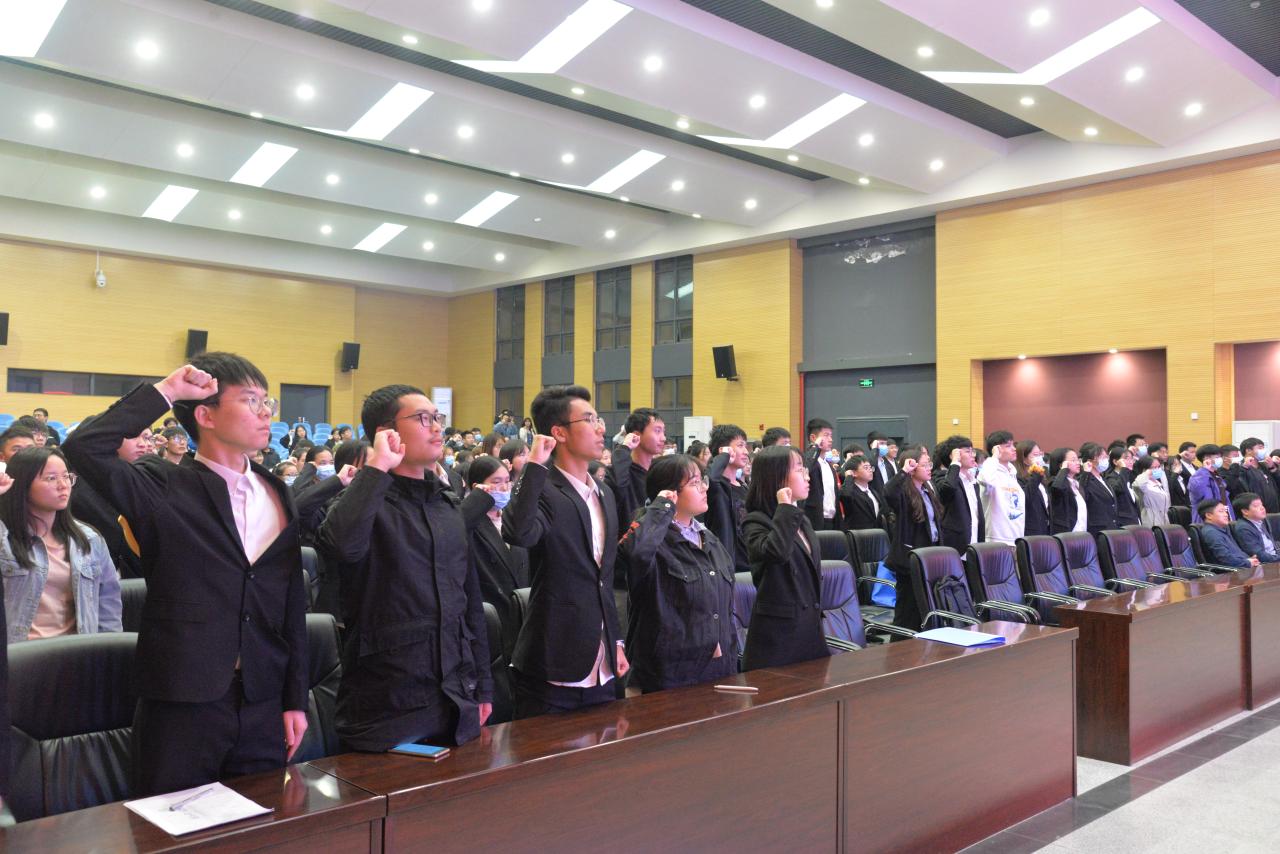随后,主席会成员代表分别就团委、学生会、宿委会做了详细的工作介绍。学生会主席何泉龙上台带领大家做就职宣誓,坚定而执着的誓词是我们对团学联不变的忠诚,它代表了我们的执着与信念,鼓励我们在不懈中坚持。