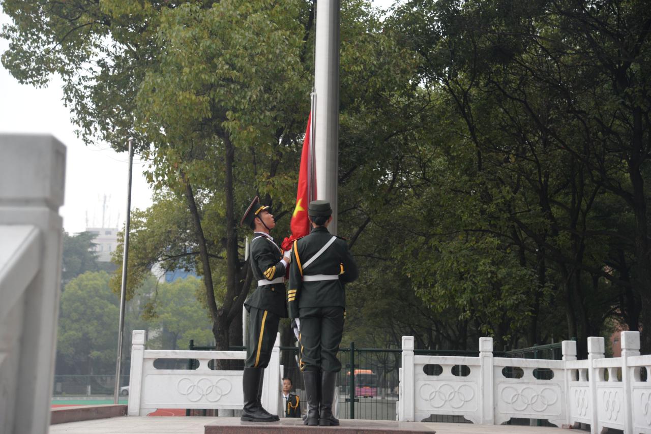 通讯社讯(见习记者 谭昌鑫/文 彭玉琴/摄)为了贯彻党的教育方针,厚植爱国主义情怀,增强广大师生的民族自豪感和自信心,11月16日上午7时,pp电子游戏官网西校区升国旗仪式在田径场隆重举行,pp电子党委副书记谭亮魁、学工办主任刘庆、团委书记侯聪、全体辅导员及18、19、20级全体学生参加本次升旗仪式。