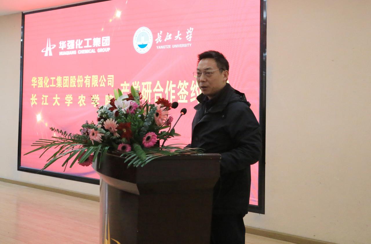 庞占岭副董事长代表公司致欢迎词,他代表公司对李俊凯院长一行的到来表示热烈的欢迎,并介绍了华强化工集团股份有限公司的发展历程、主营产品、经营情况以及发展规划,公司通过科研创新以及企业改革,已经发展成行业领军企业。他说,公司与pp电子游戏官网开展产学研合作,必将实现“产教融合、资源互补、产学共赢”的目标。
