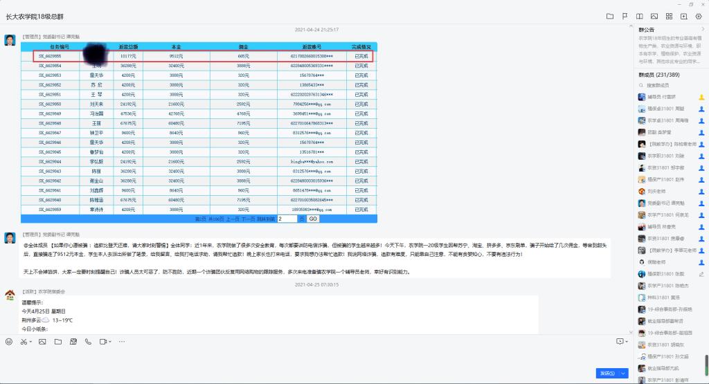 在此期间,pp电子党委副书记谭亮魁通过发布群通知和公告,向大家广泛传授“什么是电信诈骗”、“电信诈骗的特点”、“诈骗的危害”、“如何防范电信网络诈骗”以及有关“校园贷金融风险防范”等相关知识。结合最近几起比较严重的诈骗案件,谭亮魁为同学们分析了诈骗手段以及诈骗心理,认真讲解“安全防范诈骗提示”,教育大家如何防范诈骗,提醒同学们增强安全防范意识,保护财产安全。