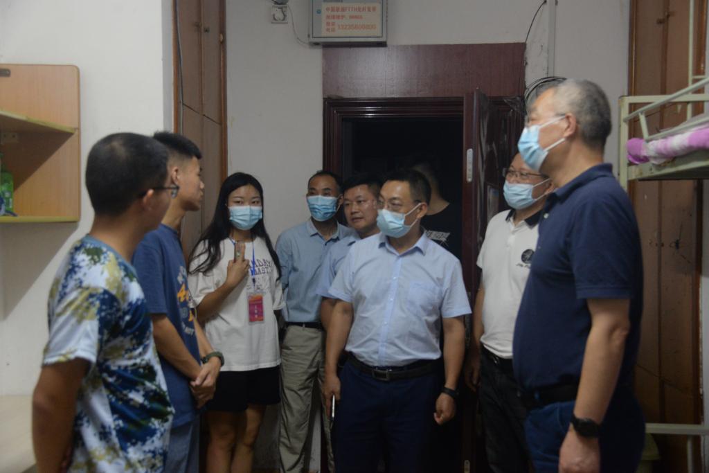 通讯社讯(学生记者 宋健玲 谭昌鑫/摄 张玉藟/文)9月5日傍晚6:50,校长冯征、院长李俊凯、党委书记冯发明、副院长张文英、党委副书记谭亮魁以及各级辅导员、新生班主任前往pp电子风华园公寓看望21级新生,送上温暖的关怀和问候。