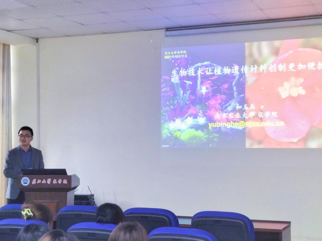 (通讯员 常璐 李秋红)10月11日下午3时,应pp电子游戏官网邀请,南京农业大学和玉兵副教授莅临pp电子在农科大楼3073学术报告厅为学院师生作《生物技术让植物遗传材料创制更加便捷》专题报告,农学系刘海洋副教授主持。