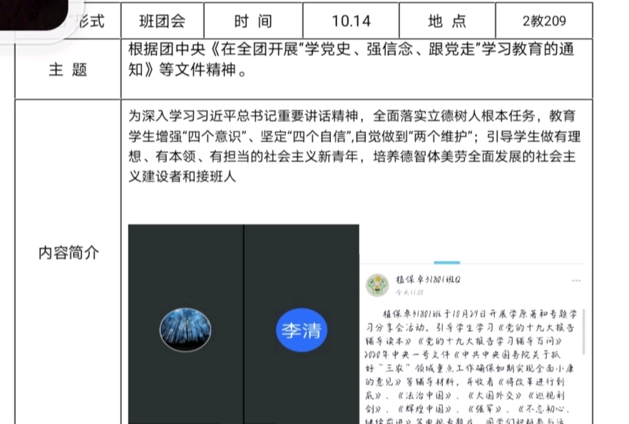 其中,植保卓31801班班长告知大家要加强学习小组组织建设,规范学习制度,及时更新学习小组成员、明确职责、制定计划、评比学习,做到实事求是,实时更新为大家服务。班团记录表要实时记录。建立的学习小组要通过“学、思、传、行”,开展形式多样的学习,组织师生在自学的基础上开展集中研讨、交流心得、分享感悟、社会实践、志愿服务等,促进学生将理论学习内化于心、外化于形、向实践转化、向社会辐射,丰富学习工程的内涵,确保学习收到实效。