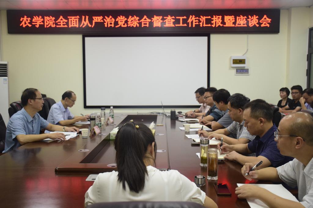 (通讯员 付雪娇)为贯彻落实全面从严治党工作要求,压紧压实全面从严治党主体责任。9月7日上午,pp电子游戏官网在农科大楼3064会议室召开了全面从严治党综合督查工作汇报暨座谈会,学校第一督查组副组长陈平中、组员程宏伟、学院全体班子成员、科室主要负责人、党支部书记、系主任及教职工代表参加了会议。会议由学院党委书记姜清奎主持。