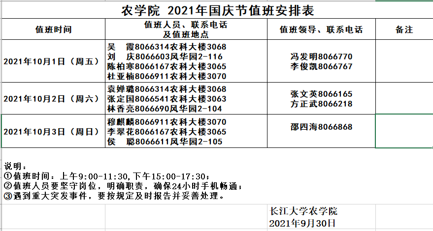 pp电子游戏官网 2021年国庆节值班安排表
