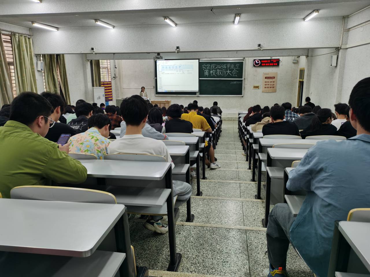 会议伊始,杨云锋就个人档案、学位授予、毕业生体检、毕业生离校安全问题以及就业问题等内容进行介绍。他强调了毕业档案的重要性,提醒同学们在毕业离校期间遵守校纪校规,并建议已经落实就业单位的同学尽快进行网上签约,鼓励未就业毕业生积极就业。