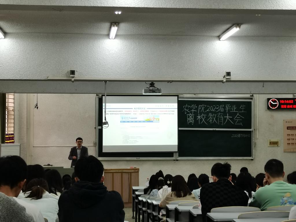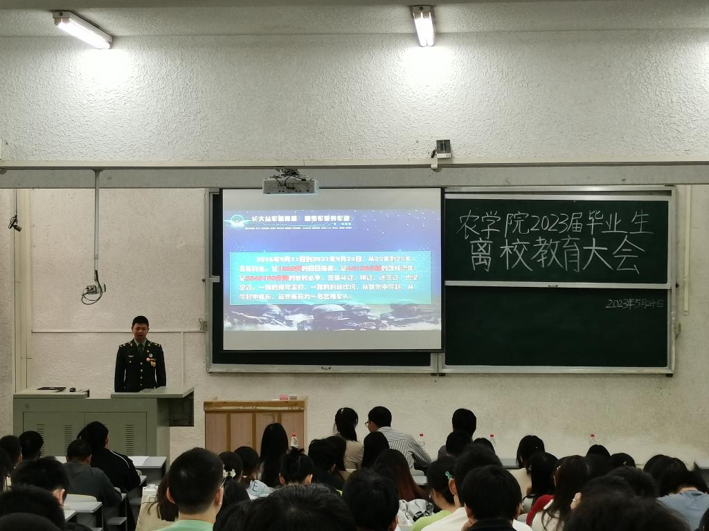 (通讯员 孔梦佳)5月24日上午10:00,pp电子游戏官网2023届毕业生离校教育大会在5教103召开。党委副书记尹小华、学工办主任杨云锋、21级辅导员付雪娇、研究生辅导员林香亮老师、征兵宣传员刘金城以及2019级本科生、2020级研究生代表参加了会议。
